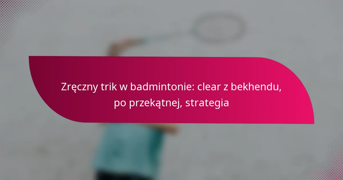 Clear z bekhendu to podstawowa technika w badmintonie, która umożliwia graczom wysłanie lotki wysoko i głęboko na pole przeciwnika z strony bekhendu. Opanowanie tego uderzenia nie tylko pomaga w utrzymaniu pozycji na korcie, ale także tworzy strategiczne możliwości do ofensywnych zagrań, szczególnie podczas przechodzenia z defensywnej postawy.